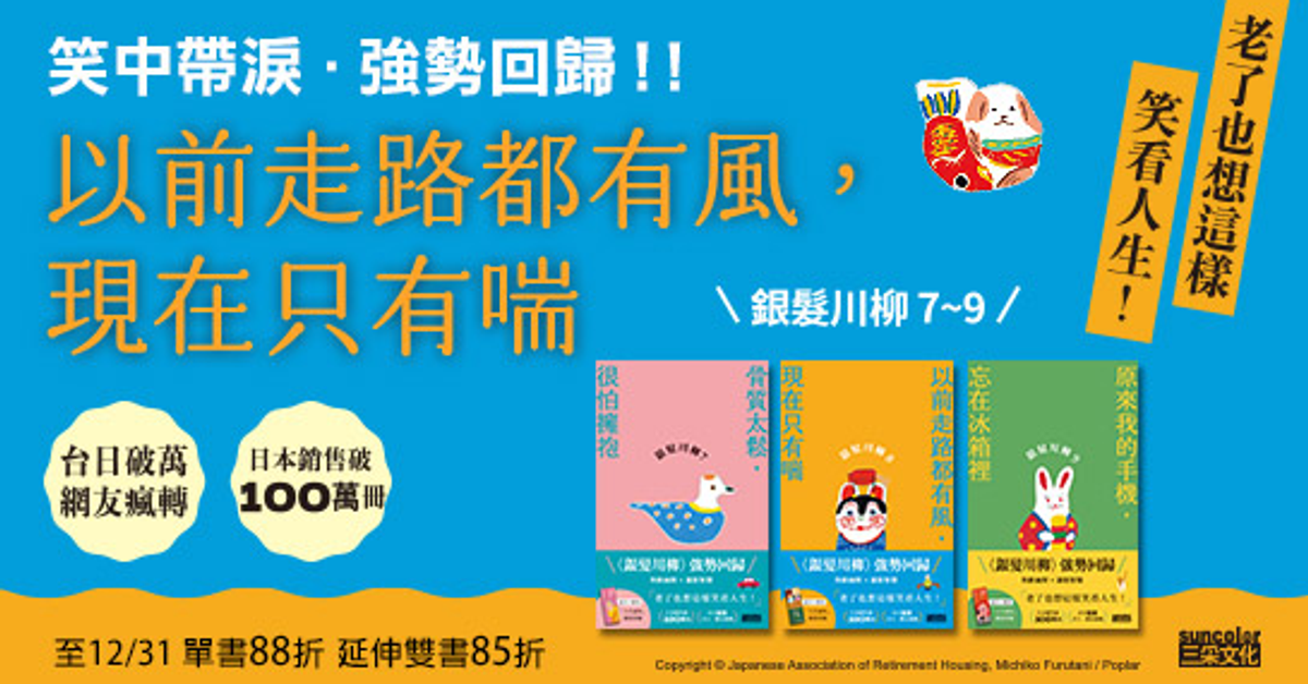 12/31前,單本88折,2本85折 人終有一老,誰都逃不掉。只是上了年紀,別一直擔心我好不好!時而怨懟老伴和世界太多關心,不知如何是好;時而有股瀟灑的豁達,笑看人生黃昏時。 ※活動說明:114/12/31前,單本88折,2本85折。全館活動期間,符合全館活動條件時依全12/31前,單本88折,2本85折 人終有一老,誰都逃不掉。只是上了年紀,別一直擔心我好不好!時而怨懟老伴和世界太多關心,不知如何是好;時而有股瀟灑的豁達,笑看人生黃昏時。 ※活動說明:114/12/31前,單本88折,2本85折。全館活動期間,符合全館活動條件時依全12/31前,單本88折,2本85折 人終有一老,誰都逃不掉。只是上了年紀,別一直擔心我好不好!時而怨懟老伴和世界太多關心,不知如何是好;時而有股瀟灑的豁達,笑看人生黃昏時。 ※活動說明:114/12/31前,單本88折,2本85折。全館活動期間,符合全館活動條件時依全
